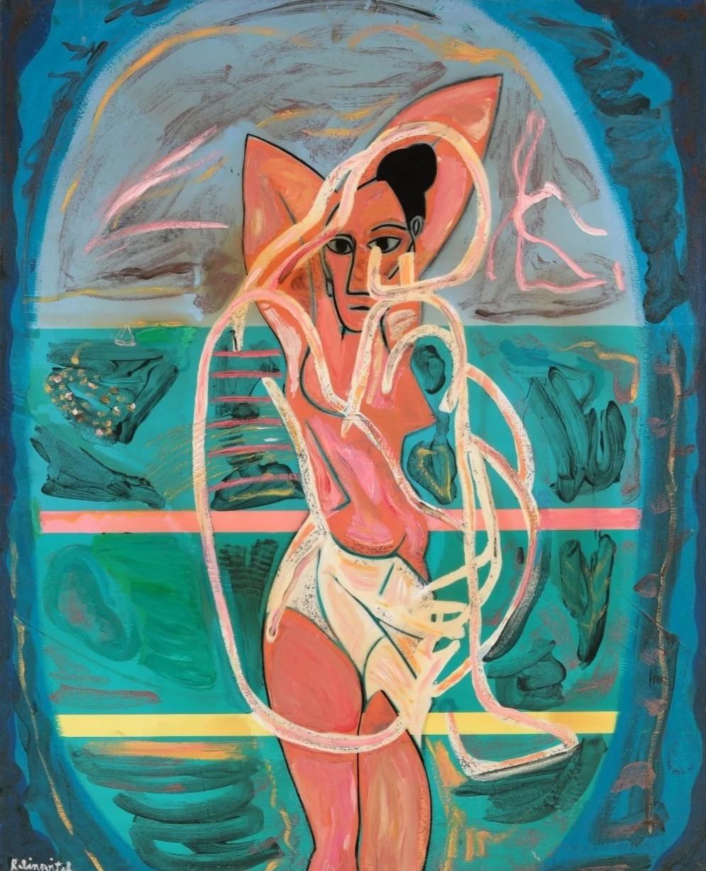 "The Dancer and Peacock" 1993-1996, acrylic on canvas, 62" x 60" nyc
